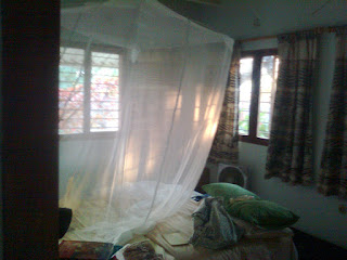 Vroeg vroeg is ons in die bed en probeer slaap in die hitte met die waaiers aan.