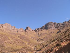 The best way to describe Lesotho is to say it is a country of massive mountains that remind us of God’s majesty. We drove over the mountains with the highest point of 3090m above sea level. As high as the mountains are, so the deep are the gorges. The grass is dry now but it is still beautiful and every house or hut has it’s own peach tree that is in bloom and as the light changes with shadows and light before the sun disappear behind the mountains, the pink blossoms of the peach trees are enhanced and it is just breath taking beautiful. Adding to that the sound of the sheep and cattle going home for the night, is awesome. Attached are some of the photos about the beauty of Lesotho, more on the ministry will follow.